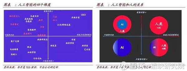 李开复在今年8月的TED演讲中,通过创造力和同情心两个维度划分出了四种人类与人工智能共事的方式。
