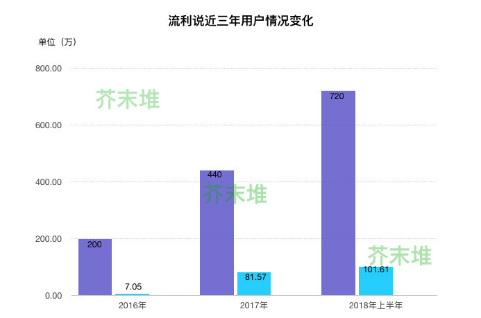 免费增值使流利说前期积累了巨大的用户池。紧接着,基于定制化AI交互课程99元每月的亲民价格,收获了大量付费用户的尝试。招股书显示,流利说平均每月活跃用户数量从2016年的200万增加到2017年的440万,并在2018年上半年增加到720万。截至2018年6月30日,流利说累计注册用户为8380万。