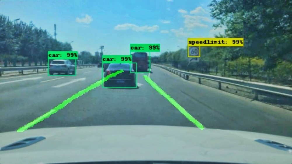 高德地图车载AR导航对车辆、车道线和限速标志等各类对象,均有很好的识别效果