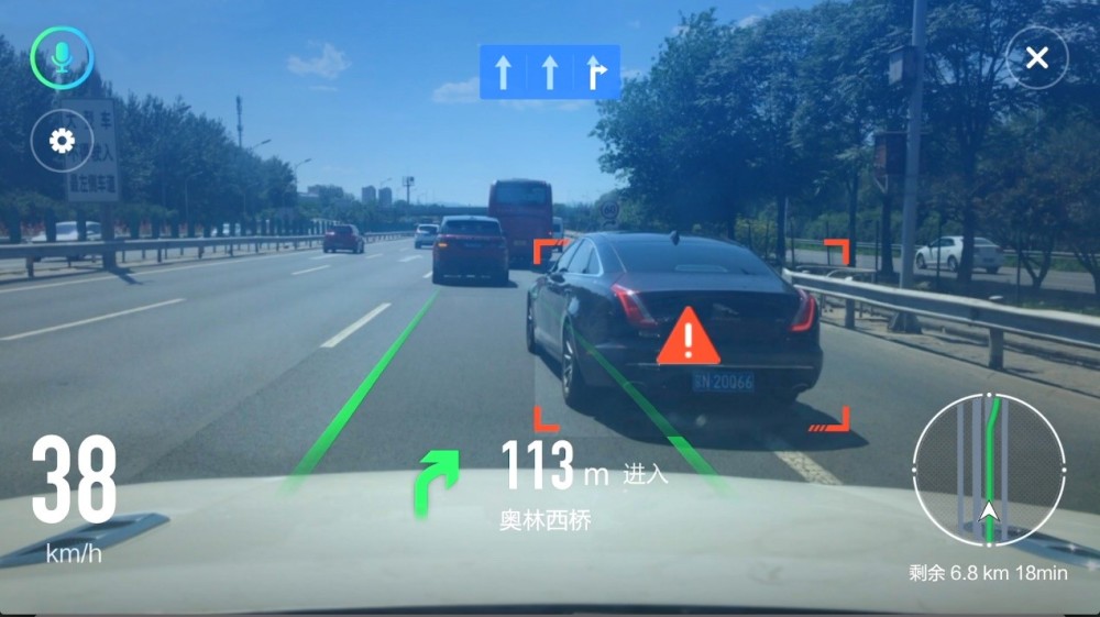 高德地图车载AR导航可智能识别前方车辆,并提供跟车距离预警