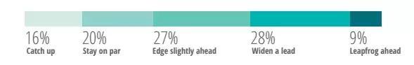 许多先行者正对认知技术进行投资,从而提高他们的竞争力。63% 接受调查的主管表示,他们的人工智能项目需要赶上竞争对手,最好是能够保持一定的优势(见图 2)。