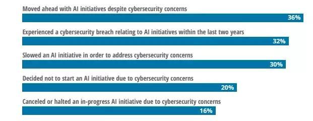 我们已经看到,网络安全对一些先行者产生了负面影响,其中 32% 的人遭受了与人工智能相关的漏洞。由于网络安全问题,一些公司放慢或停止了人工智能计划。