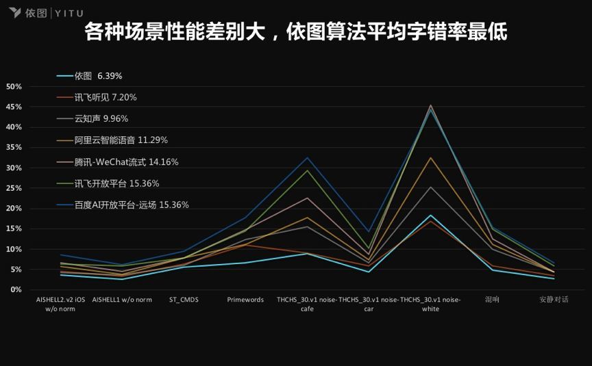 实际情况是,“科大讯飞的语音识别能力比BAT领先很多。在场景测试中,除了依图和科大讯飞之外,大部分厂家的算法字错率抖动大,意味着场景的通用性差。”