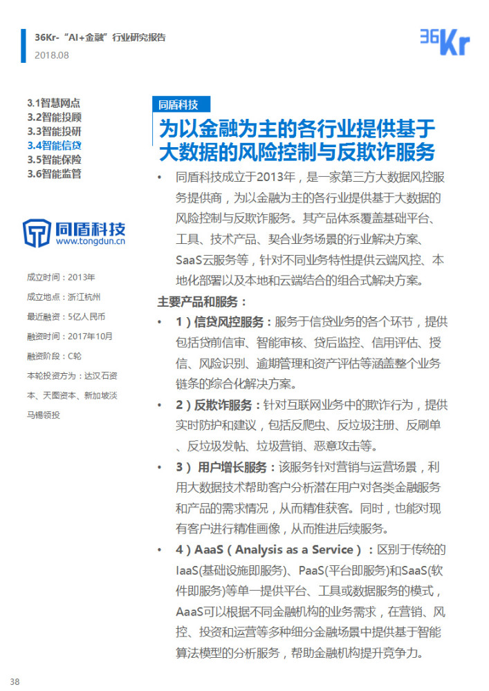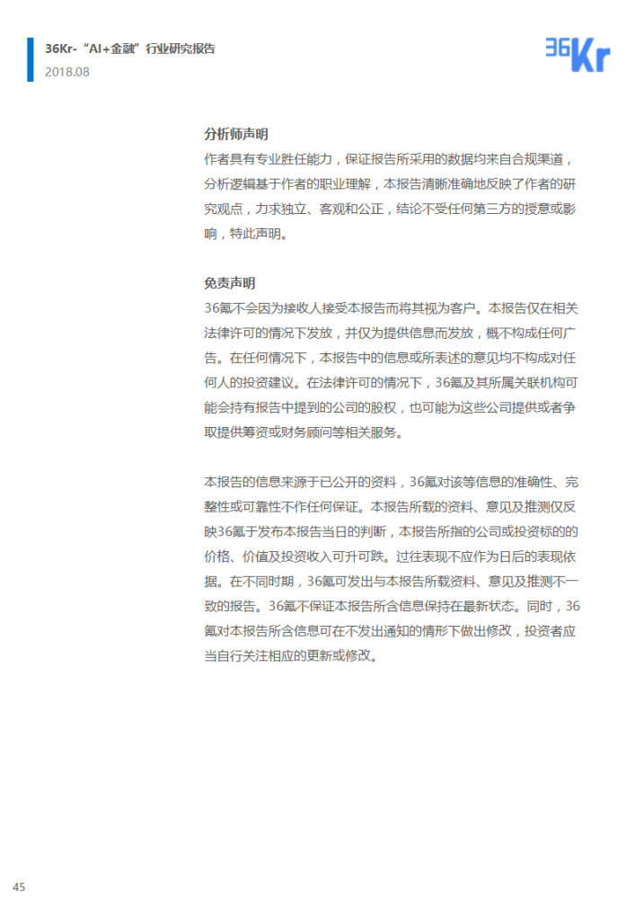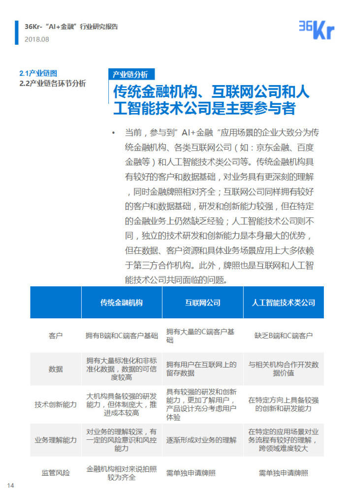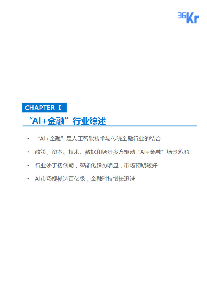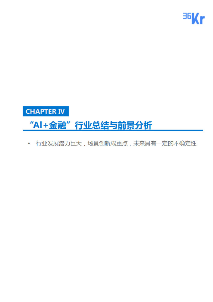 当前人工智能在金融行业的各个细分领域应用还有较大的发展空间,行业处于初创期,机遇与挑战并存。