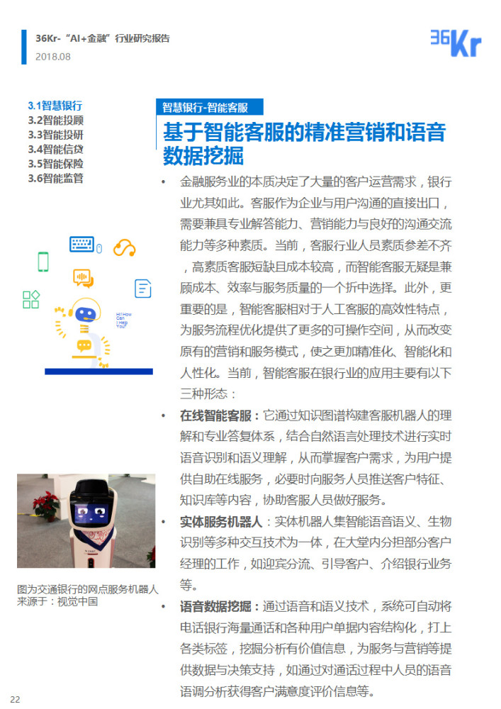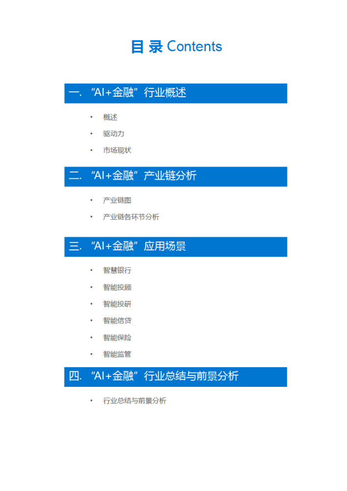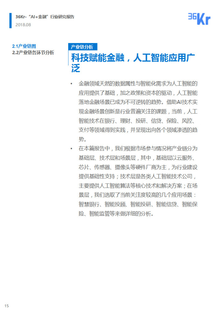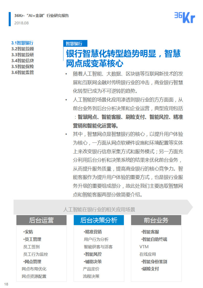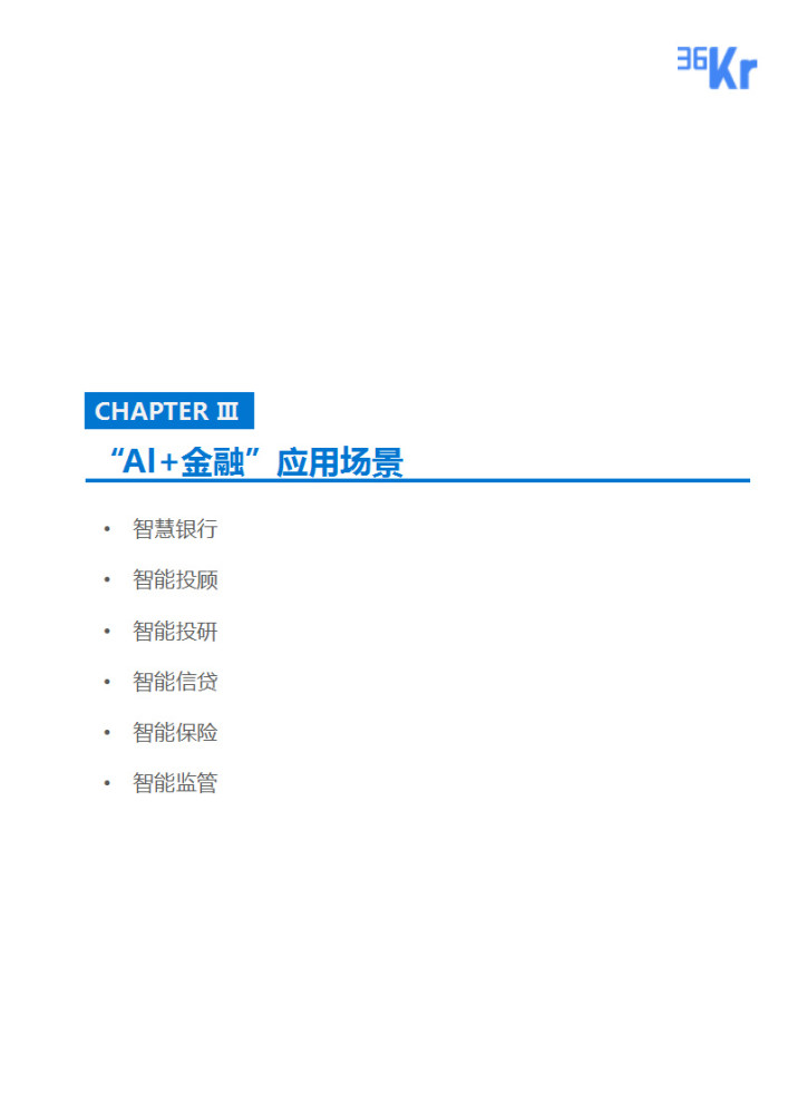 “AI+金融”的应用场景:智慧银行、智能投顾、智能投研、智能信贷、智能保险、智能监管