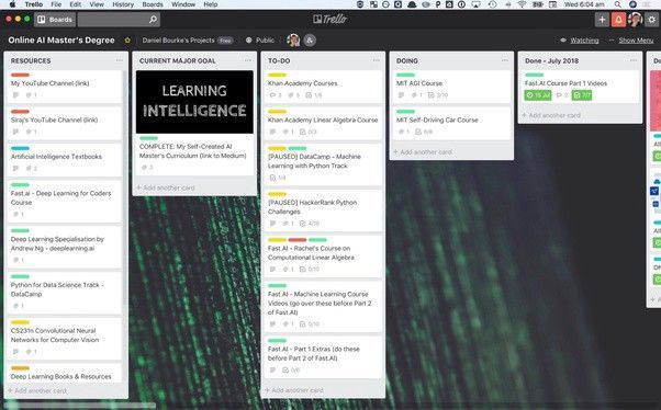 自从我第一次写了自己的经历以后,课程略有变化,但仍然相关。我每周会查看几次 Trello board,以跟踪自己的进度。