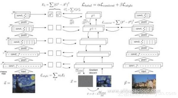 此优化有两个主要目标:第一个是使生成的图像的内容更接近原始图像的内容,而第二个是使生成的图像的风格与指定的风格匹配。风格由Gram矩阵体现,而内容直接由神经元的激活值体现。