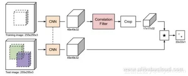 相关滤波器训练线性模板以区分图像区域和它们周围的区域,然后使用傅立叶变换。CFNet与离线训练的孪生网络和相关的在线滤波模板相结合,能够提高加权网络的跟踪性能。