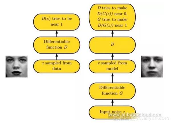 由于学习数据分布极其困难,生成对抗式网络完全避免了这一步骤并立即生成图像。生成对抗式网络使用生成网络G从随机噪声创建图像,并使用判别网络D来确定输入图像是真实的还是伪造的。