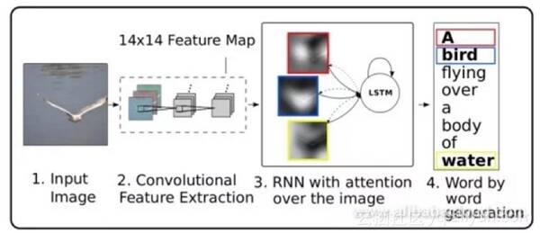注意力机制是机器翻译器用来捕获远程依赖关系的标准技术,也可以用于图像字幕。在解码器网络中,除了预测下一个单词之外,在每个时刻,我们还需要输出二维注意力图像并将其用于深度卷积特征的加权收敛。使用注意力机制的另一个好处是网络可以被可视化,这样我们就可以轻松地看到网络在生成每个单词时所看到的图像部分。