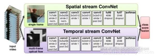 这种类型的方法使用两个独立的网络来区分从视频捕获的图像信息和时间信息。图像信息可以从单帧中的静止图像获得,并且是图像分类的经典问题。然后通过光流获得运动信息,跟踪目标在相邻帧上的运动。