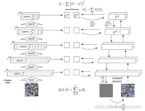 它对给定纹理图案的Gram矩阵进行特征逆向工程。使生成图像的各层特征的Gram矩阵接近给定纹理图像的各层Gram。低层特征倾向于捕获细节信息,而高层特征可以捕获更大面积的特征。