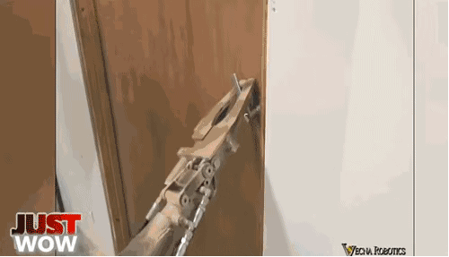 以这个开门机器人为例,与其说是开门机器人,倒不如说是拆门机器人。