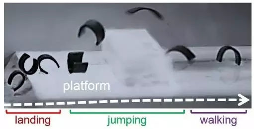 从外表看,这是一段长3.7毫米、宽1.5毫米、厚185微米的长方体机器人。现在还看不出了这个机器人的奇特之处,一旦通过磁场的控制,机器人便可以像软体动物一样完成各种指定动作。比如在水下或水面游泳、卷成圆圈滚动、跳过障碍物、在细管中爬行,灵活切换各种运动形式等等。