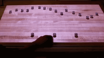 一群Zooids就构成了一组集群机器人,共同协作完成一个任务。Zooids 的工作原理是:位于活动区域上方的光学投影仪向下投射出 3000Hz 的编码序列,Zooids 通过头顶的接收器接收到这些信号后并对其进行编码,接着边追踪指令信息边执行任务。这些编码指令由用户通过电脑或手机 APP 发出。