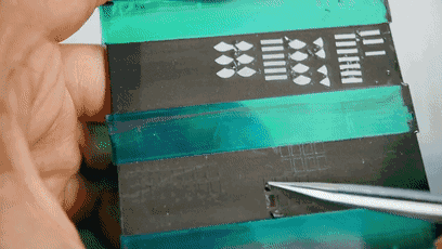 这样灵活的机器人,其制作过程却很简单,大致流程是:把适量硅胶和汝铁硼微颗粒倒到容器中,用搅拌棒将其搅拌均匀,待其成为黏性膏状物时,均匀的涂抹在有标定厚度的玻璃板上。待膏状物晾干后,用类似于激光的工具,准确的切割出想要的尺寸。